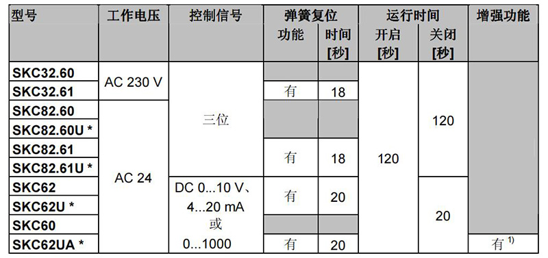 ? SKC62UA 具有以下功能:運行方向選擇、行程限位控制、帶可調(diào)節(jié)起點和動作范圍的序列控制、根據(jù)防凍保護監(jiān)視QAF21... 和 QAF61...信號動作